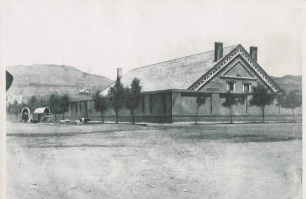 Ronald H. Walker, “The Salt Lake Tabernacle in the Nineteenth Century: A Glimpse of Early Mormonism,” Journal of Mormon History 31, no. 2 (Fall 2005), 198-240; Ryan J. Hallstrom, “The Bowery and the Old Adobe Tabernacle,” Intermountain Histories (Sep. 24, 2020). This is where the Assembly Hall now stands.